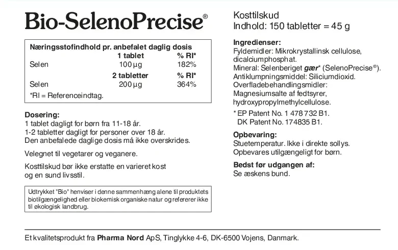 Bio-SelenoPrecise er det originale selenpræparat med 100 mcg af den veldokumenterede og patenterede SelenoPrecise selengær. Dansk produceret af Pharma Nord.
