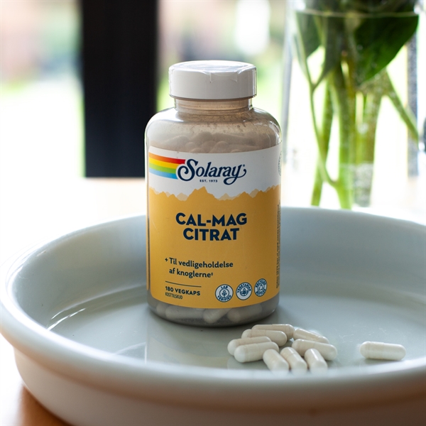 Cal-Mag Citrat Solaray indeholder kalk, der er nødvendig for vedligeholdelse af normale knogler og tænder og Magnesium, der bidrager til vedligeholdelse af normale knogler og tænder og til en normal muskelfunktion.