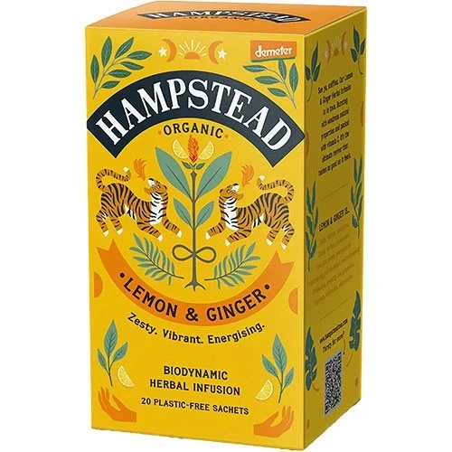 Væk dine sanser med Hampstead Tea Økologisk Citron & Ingefær Te – en livlig og opkvikkende urtete!