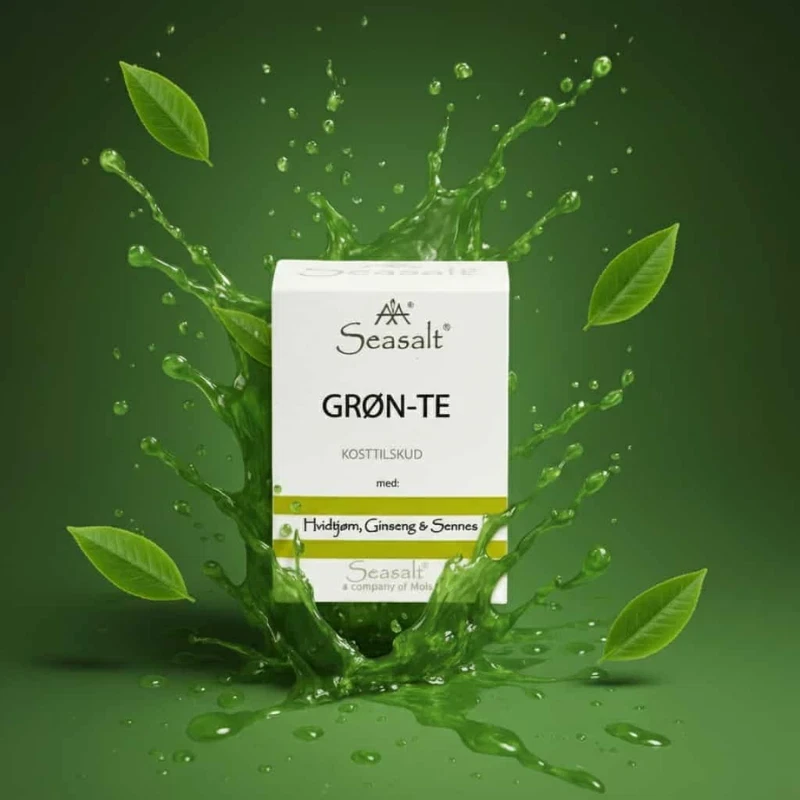 Grøn Te Seasalt, med 7 breve, er en delikat og aromatisk te, ideel til udrensningskure og slankekure. Kan drikkes varm eller kold. Indeholder naturlige ingredienser som grøn te, hvidtjørn, ginseng og sennes.