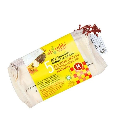 Grøntsagsposer i øko bomuld str. M 5 stk