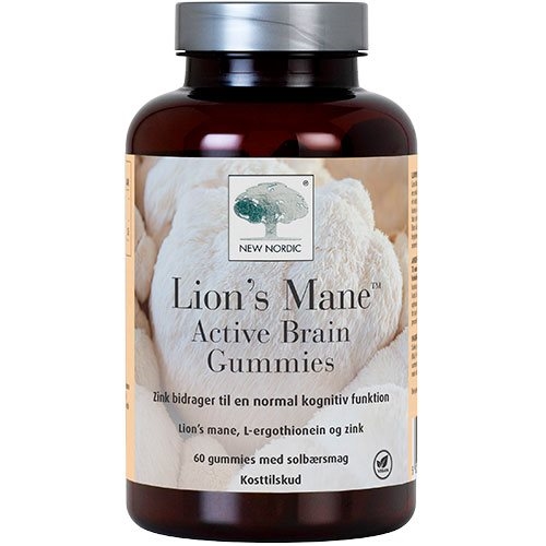 Lion’s Mane Active Brain Gummies – velsmagende solbær-gummies med Lion’s Mane svampeekstrakt, L-ergothionein og zink. Støtter normal kognitiv funktion og beskytter mod oxidativt stress. Nem og lækker daglig dosis.