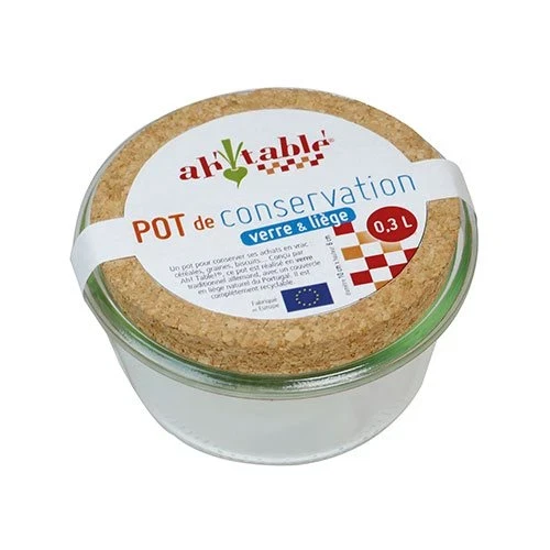 Opbevaringsglas med korklåg (Ø 11 cm, H 6 cm) – multifunktionelt til køkken, kontor og badeværelse. Tåler ovn, mikro og fryser (uden låg), miljøvenligt og genanvendeligt.