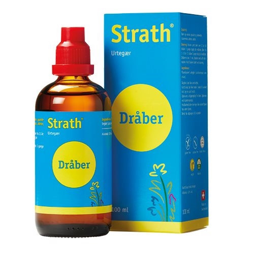 100 ml. Strath Urtegær dråber er et unikt kosttilskud til børn, voksne, gravide, ammende, studerende, atleter og ældre mennesker. Uden farvestoffer, konserveringsmidler, aromastoffer, gluten og laktose. Vegan. Kosher. Indeholder alkohol. Midsona OTC.