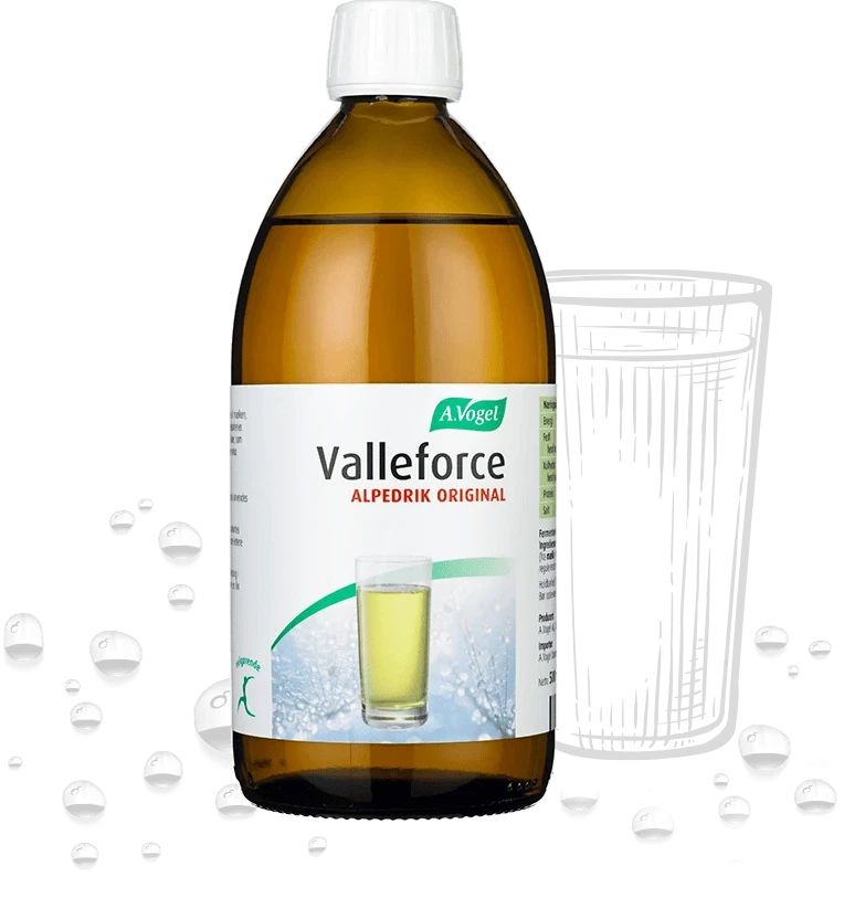 Valleforce Alpedrik giver et sundt miljø i tarmafsnittet og medvirker til en god fordøjelse.